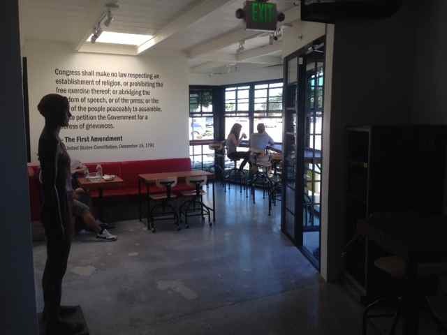 Unable to be physically present at the opening of McWeekly’s new Press Club cafe and juice bar in Seaside, my psychic presence is treated to a tour and cup of Joe, thanks to great buddies Bradley and Digger. I already love everything about it.