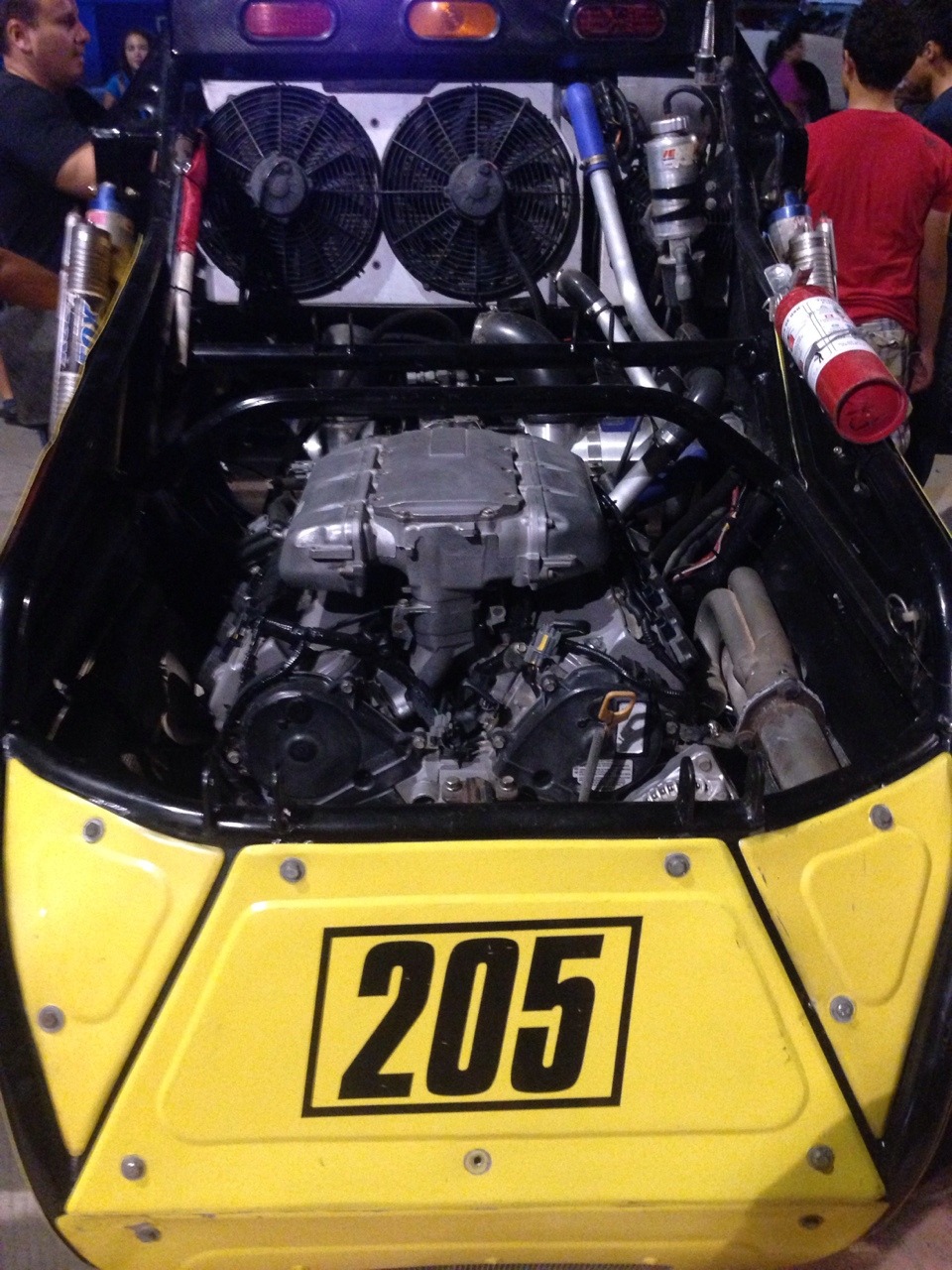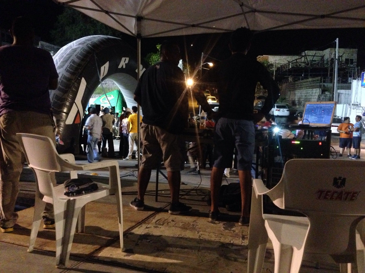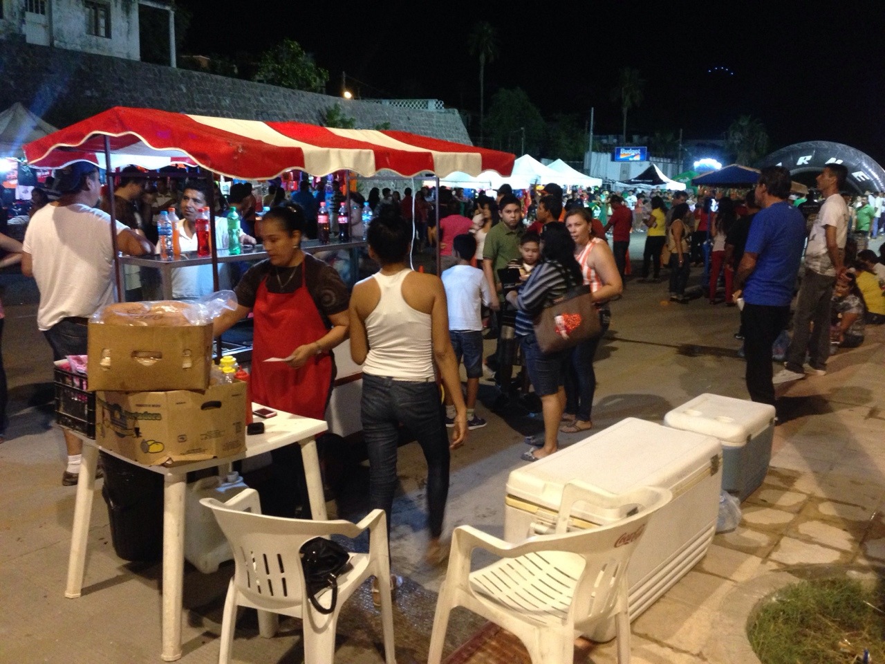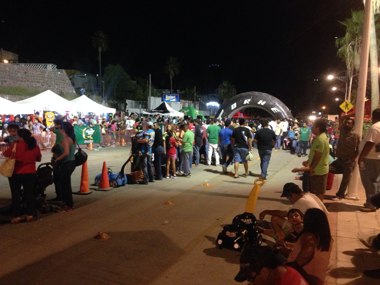 Dinner at Bandidos and Baja Grand Prix street scene. Bandidos is a burger joint, La Paz’s version of American Graffiti with outdoor tables, a grill made out of the engine and hood of an old Chevy, and American blues and rock music from the 1950s-1980s (mostly the early 1960s). Charlie’s Mexican classmates swear it’s the best place for burgers, so of course that’s what I had to get. Mistake. Their burgers are topped with plasticized American cheese – plastic wrapping still on? – which mades them close to inedible but not too close when you’re really hungry. After dinner we walked along the Malecón where hopped-up dune buggies were displaced, apparently in advance of the Baja Grand Prix.