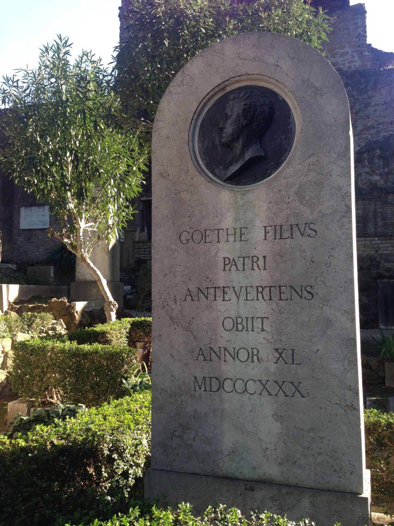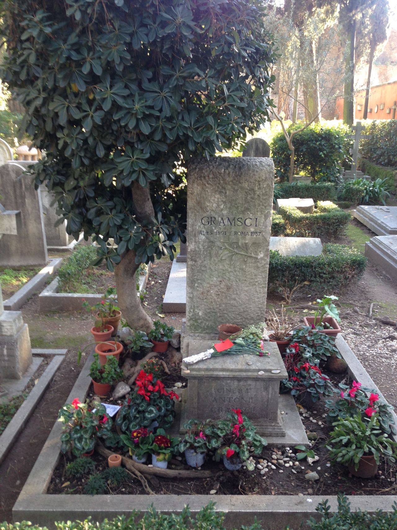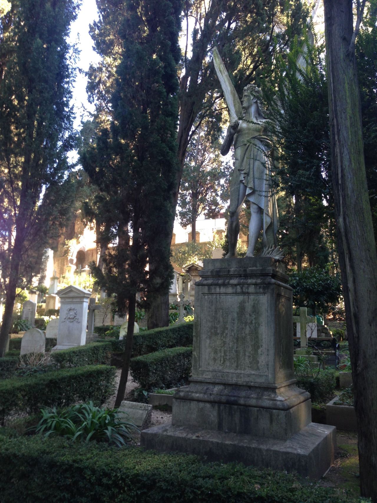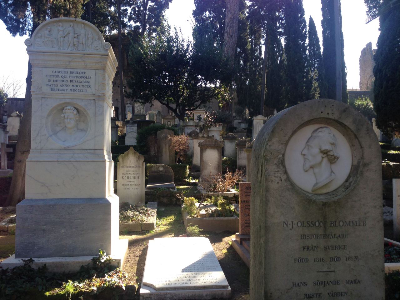 The Protestant Cemetery in Rome, with graves of English poets Keats and Shelley, Antonio Gramsci, founder of the Italian Communist Party, and other luminaries.