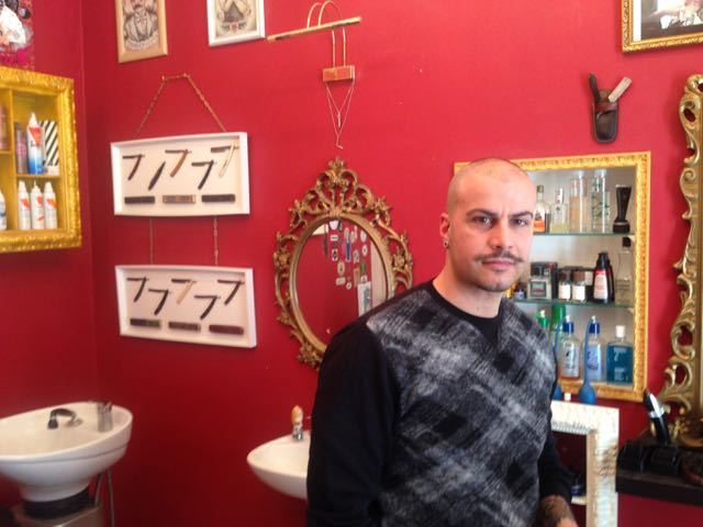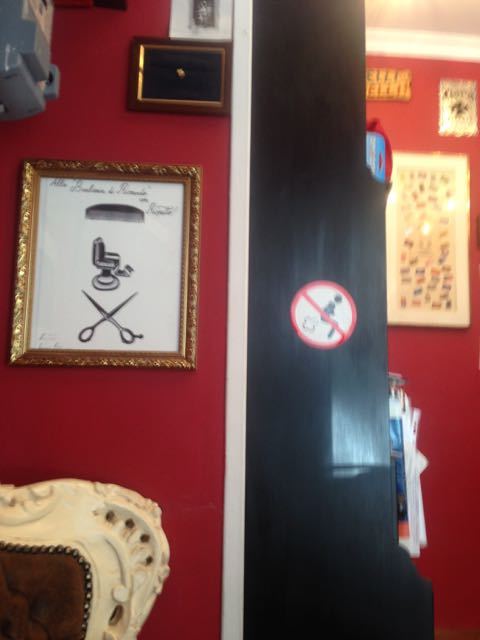 As my birthday gift to my wife, I went today to La Barberia Di Riccardo in Testaccio for my first Italian haircut. Riccardo asked me how I wanted it cut. I said shorter, not realizing one shortness fits all. Can’t argue that I didn’t get my money’s worth – electric razor, hand scissors, single edged blade trim all leading to big balls of hair on the floor. Love it or hate it – and I’m putting myself in the latter category – this haircut is on Becky.