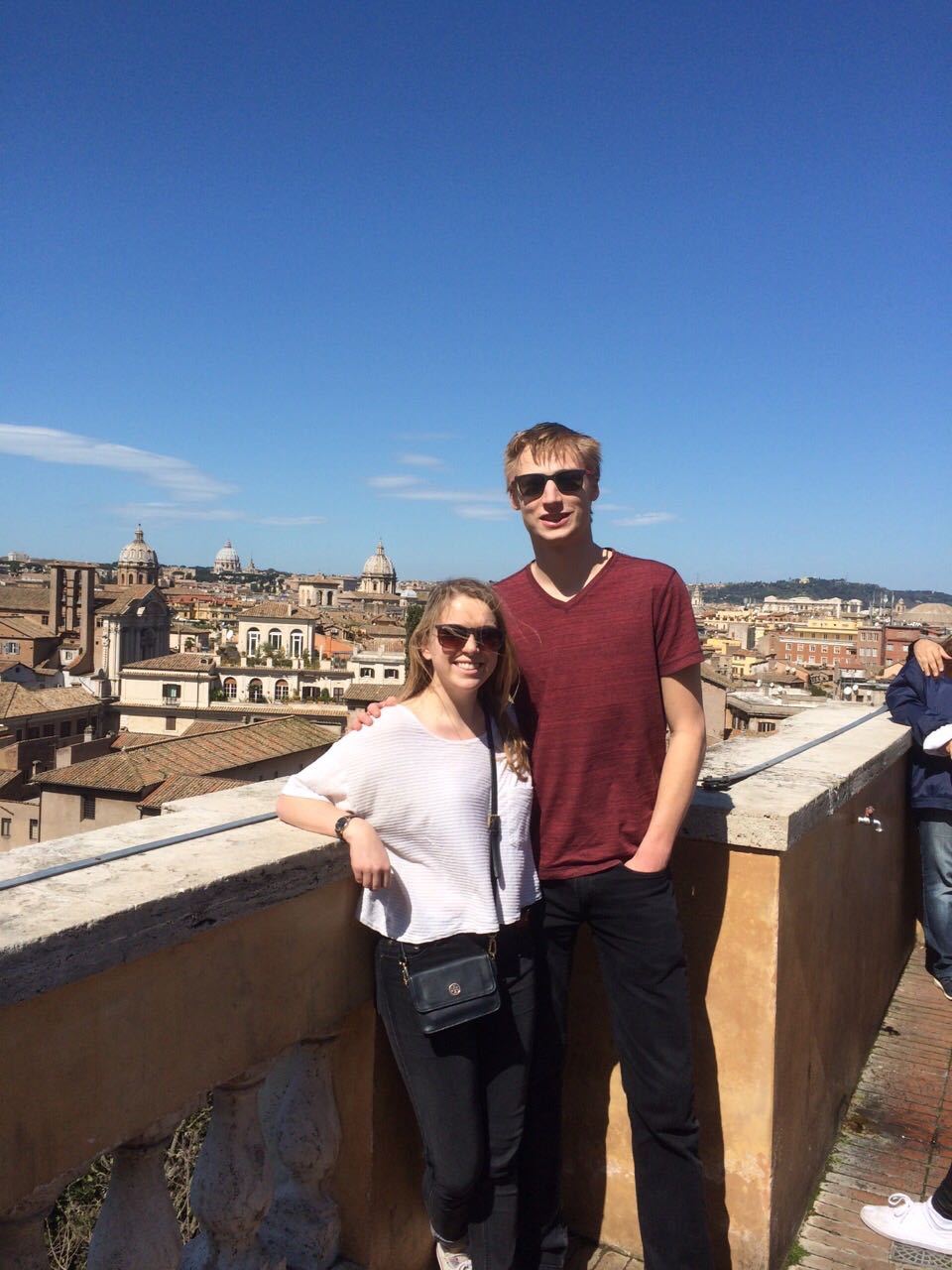New friends Jenny Moroney, daughter of Jim and Barbara, student in Florence; and Travis Breier, son of Mark and Ronda, student in Amsterdam finding themselves in Rome, at our apartment, on the same weekend, with the stars aligning for views of the Vatican and a mystery statue on the way to the Spanish Steps. Unbeknownst to Jenny and Travis, and maybe to their parents, Mark, Jim, and I had dinner together in 2000 when Mark and I were at Beyond.com and Jim was running digital operations for A.H. Belo. The universe contracts as time expands.